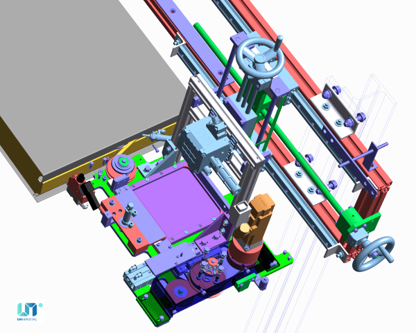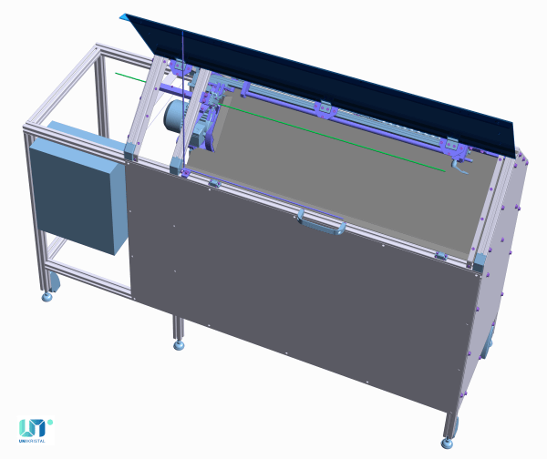 Naprava je namenjenjena lepljenju traku na bok panela. Naprava samostojna enota na kateri so posameznih sistemi in sicer:
