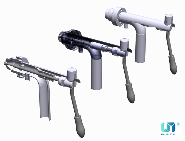 Za potrebe po prijemu obdelovancev naših izdelanih manipulatorjih in kartezijskih robotih konstruiramo prijemala za notranje in zunanje prijeme (pnevmatski ali elektro pomik prijemal)