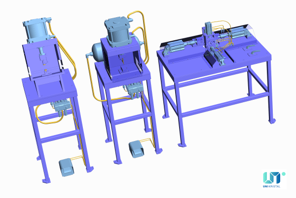 Za potrebe proizvodnje izdelujema namesnke pnevmatske stiskalnice in giljotine, ki so prilagojene namenu in mestu vgradnje (obstoječe linije … ).