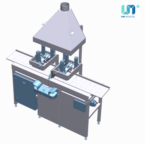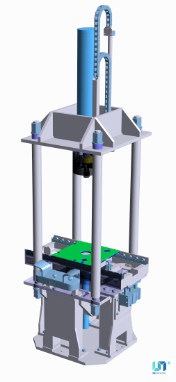 Konstrukcija stiskalnice omogoča vgradnjo na proizvodno linijo, kjer palete obdelovance potujejo skozi stiskalnico.